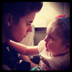 Mais tarde o cantor postou uma foto em que aparece olhando para ela com a legenda “Meu anjo”.